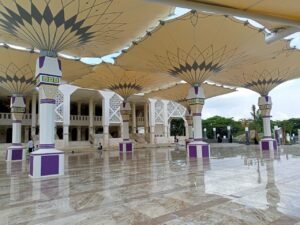 KABUPATEN TANGERANG — Bila ingin melihat Payung Masjid Nabawi Madinah tak perlu jauh-jauh ke Arab Saudi silahkan datang saja ke Masjid Agung Al Amjad Puspemkab Tangerang di Kecamatan Tigaraksa karena sekarang Pemkab telah membangun replikanya.